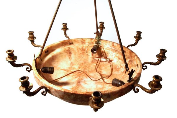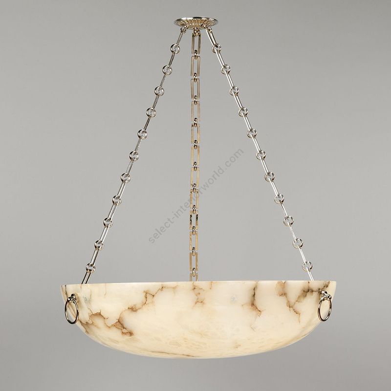 Alabaster Bowl Ceiling Light / French Alabaster Bowl Pendant Lamp 128695 - This model hangs from 4 chains with simple buttons and weighs 35kg/78lbs.